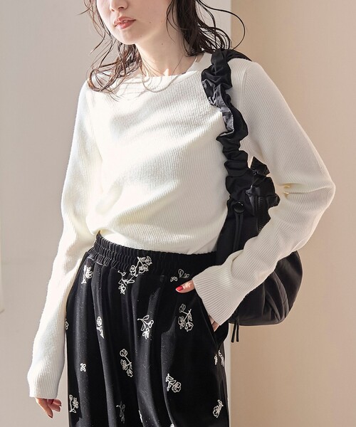 リブ仕様がさりげなく細見えをサポートし、インナーや一枚着でも着回しやすいデザイン。