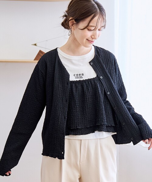 ■デザイン/素材ポコポコとした素材感が可愛らしい、キャミソールタイプのビスチェとカーディガンのマルチWAYセット。