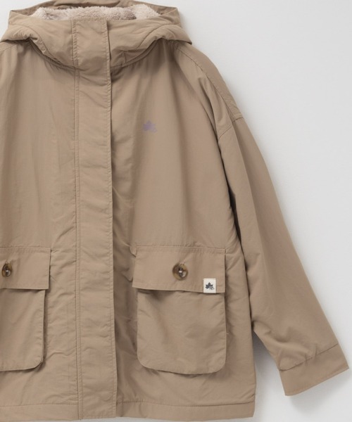 フード裏にはボア、身頃裏にはフリースが使われており、寒さにも負けない暖か仕様。