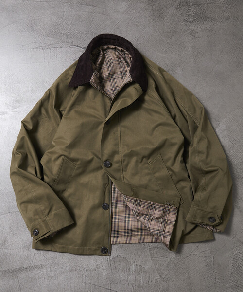 リラックスフィット リバーシブル 襟コーデュロイ ハンティングジャケット●表地と裏地で素材感、柄の異なる落ち着いた印象のリバーシブルブルゾン