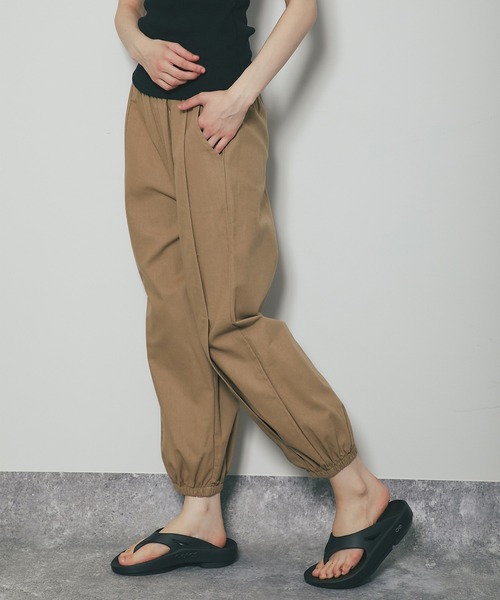 キーワード:パンツ レディース ウエストゴム クロップド ハイウエスト 裾ひも 無地 夏 春