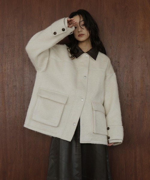 大人気、シャギーコートに襟のレザー切り替えデザインが新登場
