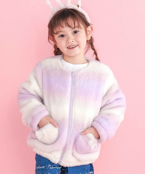 触り心地のいいもこもこボアを使用した女の子用長袖ジャケット。