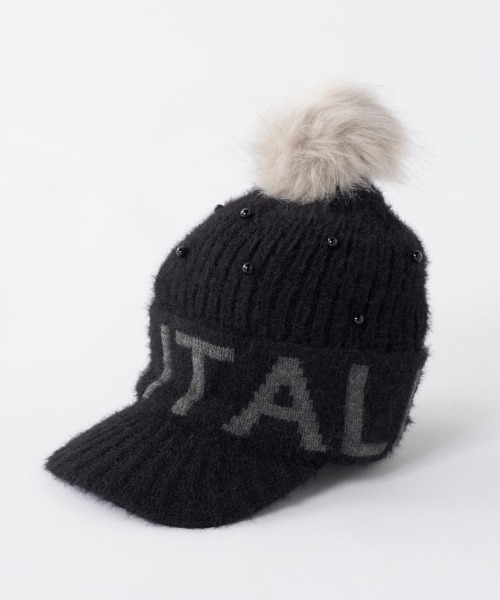 毛足のあるシャギーニットが可愛いニットキャップ。フェイクファーの梵天とフェイクパールの飾りが女性らしく、コーディネートのポイントになります。