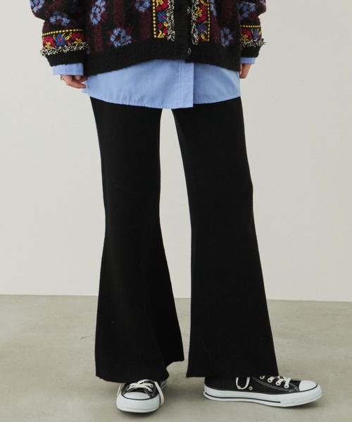 ニットならではの伸縮性と程よいフィット感を活かしたフレアシルエットのニットパンツ。