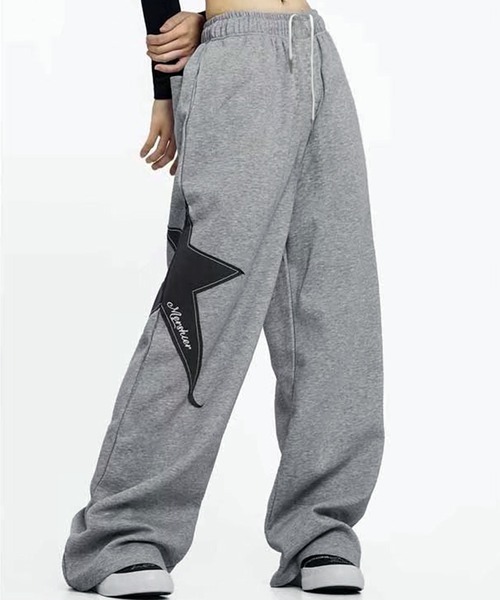 大きめのスターワッペンが目を惹く、ルーズシルエットのスウェットパンツ