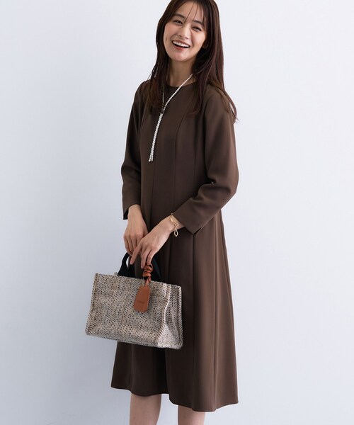ジョーゼットの上品な素材感と身体のラインをスッキリと見せてくれる切り替えラインがポイントです。
