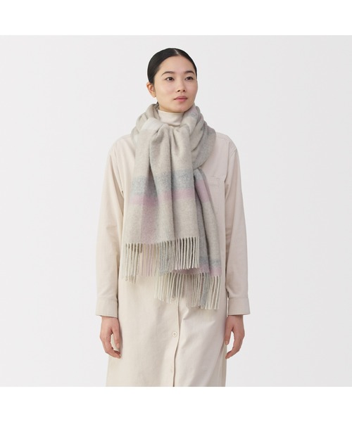 細く柔らかい羊毛だけを選別、紡績しました。ふっくらと起毛させ肌触り柔らかく、ボリュームある仕上げにしました。
