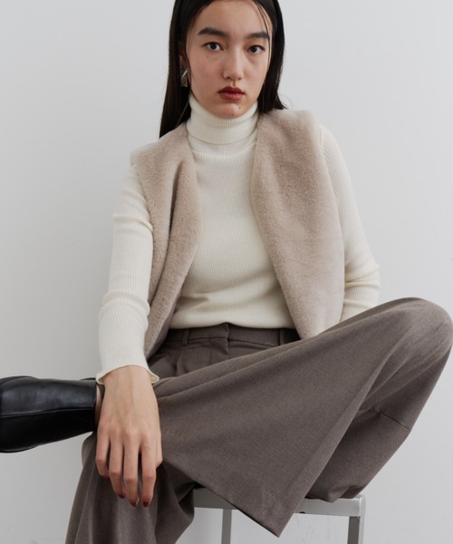 身頃にふわふわのエコファーをあしらった、ホック仕様のベスト。