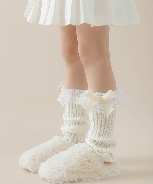 レースとリボンがかわいらしいレッグウォーマー。