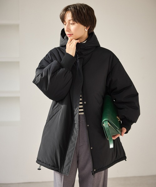 膝上まである丈感で体をしっかり暖めるアウター。【素材感】