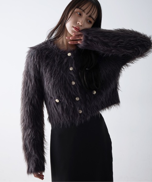 毛足の長いシャギーがゴージャスなニットカーディガン。