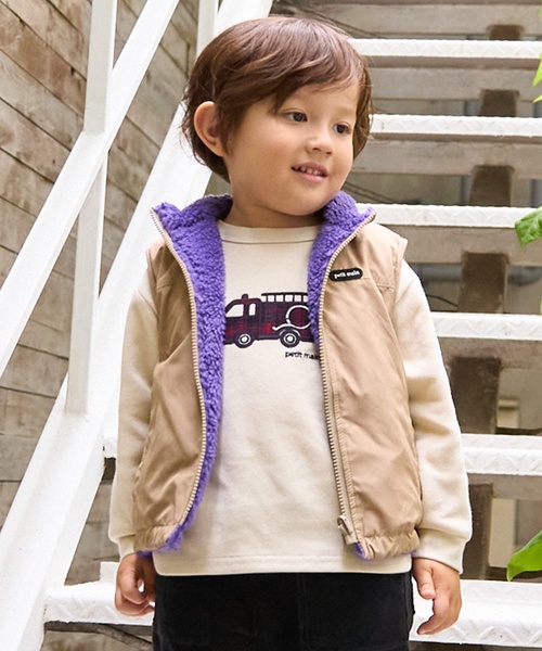 無地とボアで2通りの表情が楽しめるリバーシブルベストです。