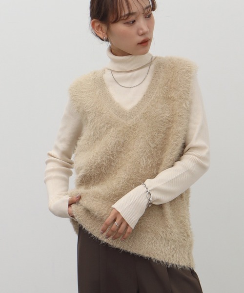 ・表情豊かなシャギー素材が目を惹く2WAYニットベスト。
