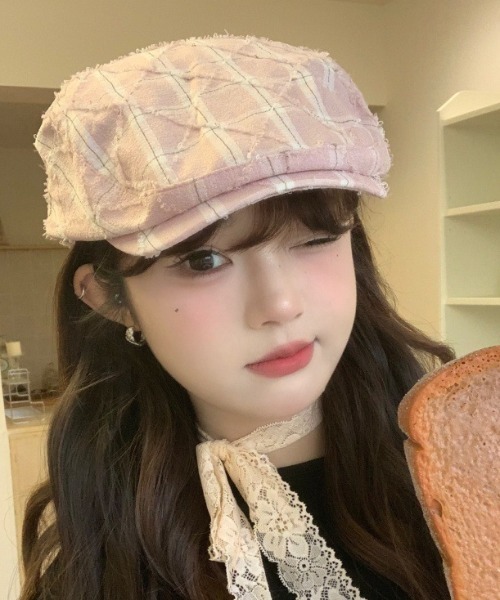 F:浅めのかぶり心地で小顔に見えます!チェック柄がアクセントになって可愛いです。