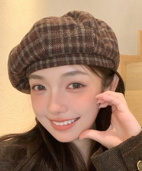 チェック柄でクラシカルな雰囲気を演出するベレー帽。
