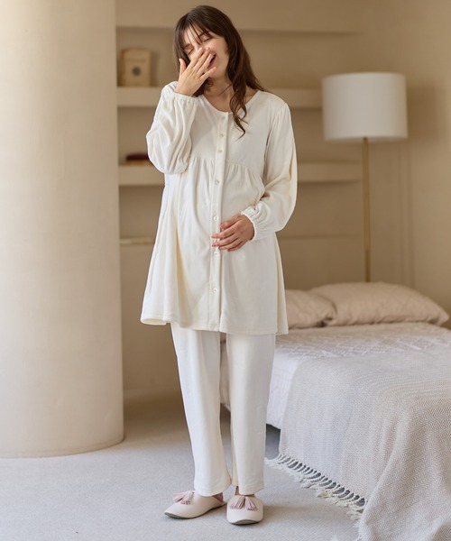 なめらかで着心地の良いベロア生地で仕立てたパジャマ。