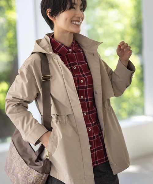 裏地に施したタータンチェック柄がシーズンムードを演出するマウンテンパーカ。