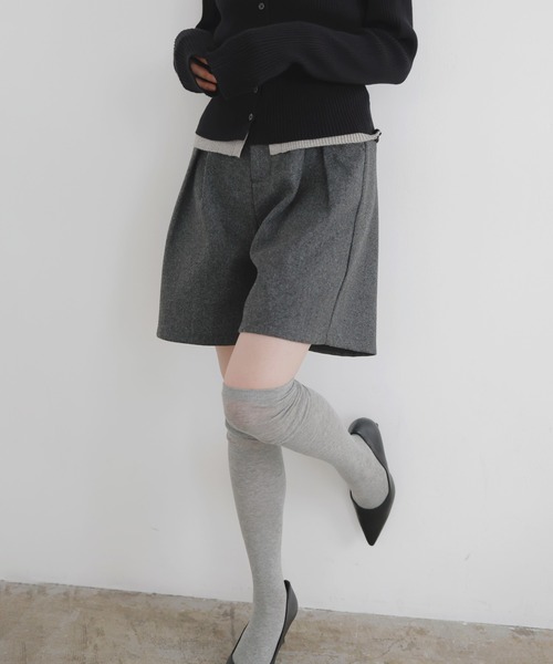 大人っぽいクラシカルムードが、シーズンスタイルを格上げするフェイクウールのショート丈パンツ