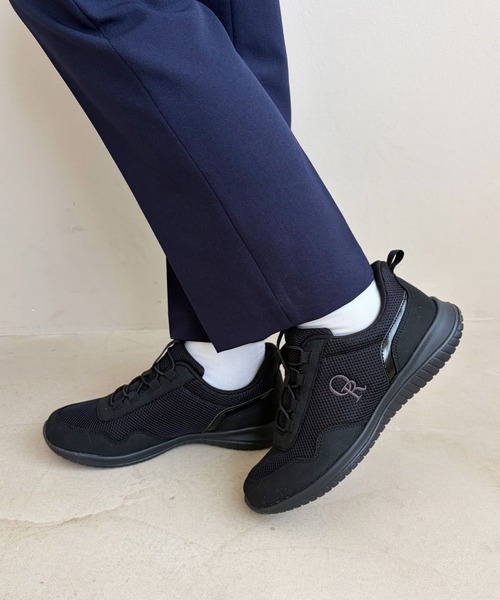 メッシュ素材が軽やかな印象のスニーカーはハンズフリー仕様で手を使わずにさっと履けるのが魅力的。