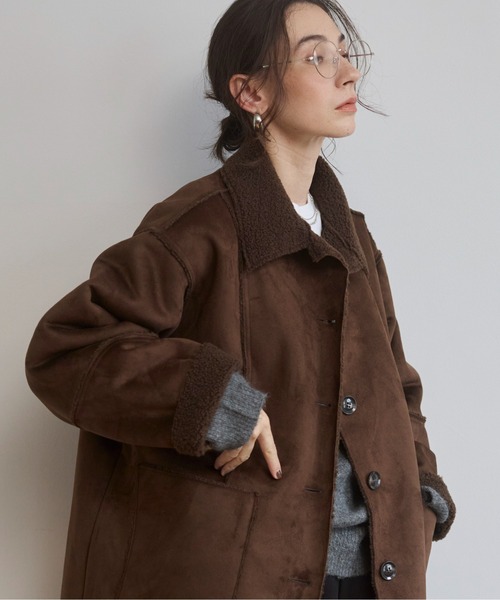 ・ふわふわのボアと上品なスエード調素材が冬の装いを格上げしてくれるムートンジャケット。