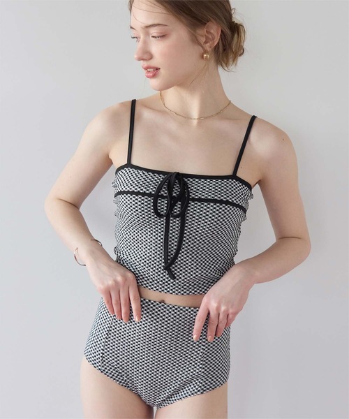 ・すっきりとしたシルエットに映えるリボンデザインのジャガードビキニ。