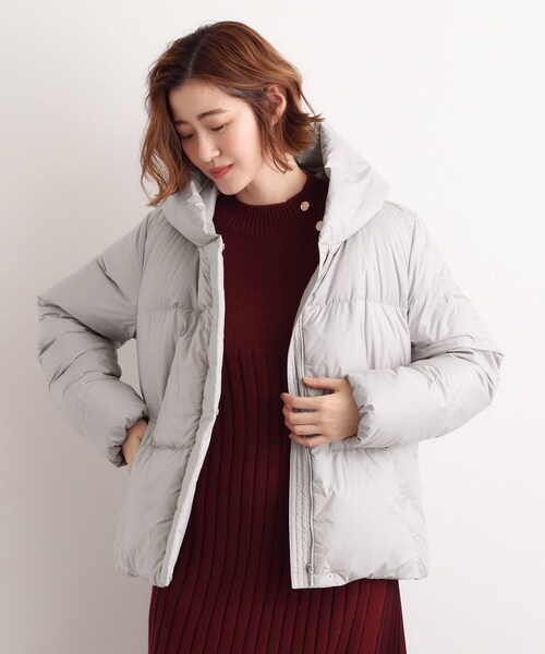 ショート丈は、首周りの華やかさを追求したボリュームネックデザイン。