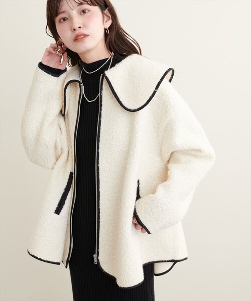 【WEB限定】ビッグ衿ループブークレショート丈コート■Design