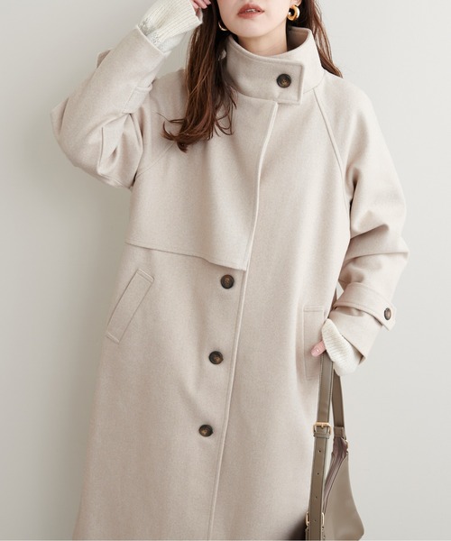 柔らかく、やや起毛がかったニットモッサ生地を使用したロングコート。