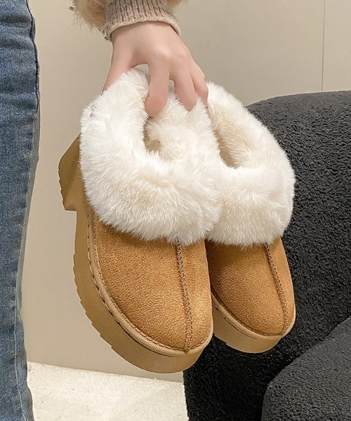 寒い季節に嬉しい、ふわふわのボアが足元をやさしく包み込むムートンスリッポン。