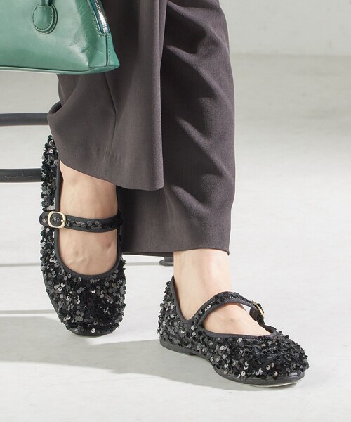 人気のメリージェーンをスパンコールであしらい、特別感のある一足。