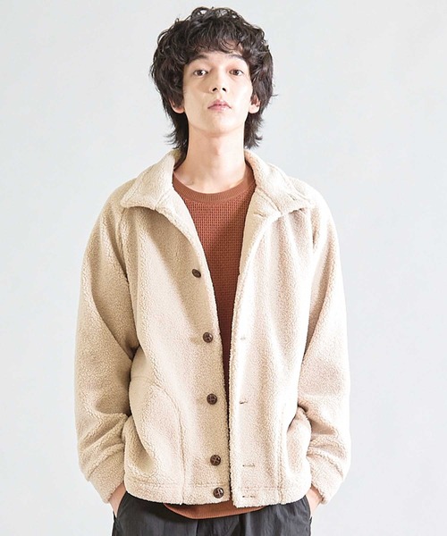 ・襟元はフェイクスウェードポンチ素材で切り替え、防寒性とデザイン性を両立。