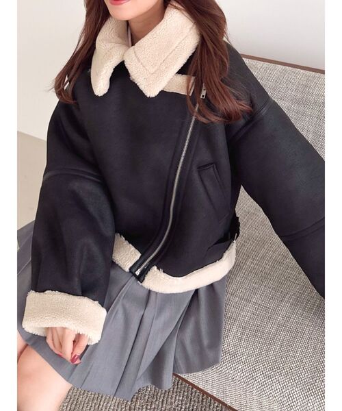 ふわもこ感たっぷりのボアと、マットな質感のフェイクムートンを組み合わせた冬映えジャケット。