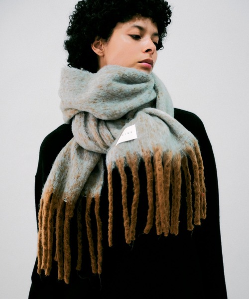 柔らかな肌触りとボリューム感の太フリンジマフラー