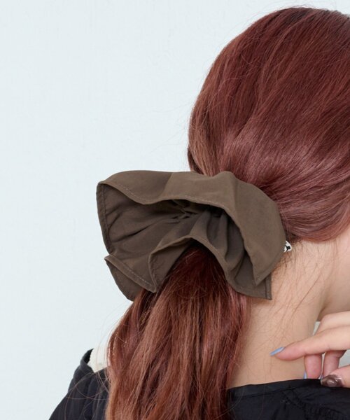 シュシュのボリューム感で後ろ姿を華やかに演出しつつ、ゴム部分でしっかりと髪をホールドします。