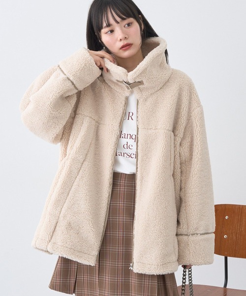 スタイリングの主役にも最適なふっくらボアのデザインブルゾン。