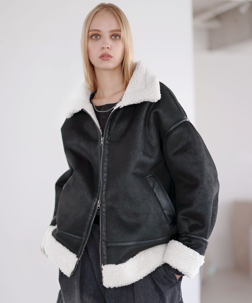 リアルな質感が特徴のフェイクムートンで仕立てた一着。
