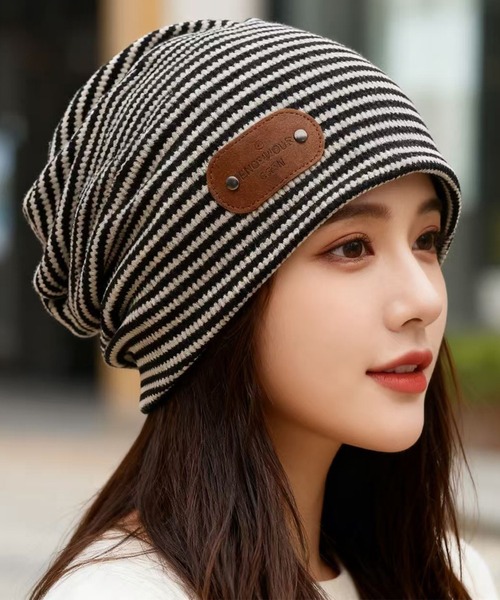 ゆったりとルーズなシルエットが可愛い、ニット素材のビーニーキャップ。