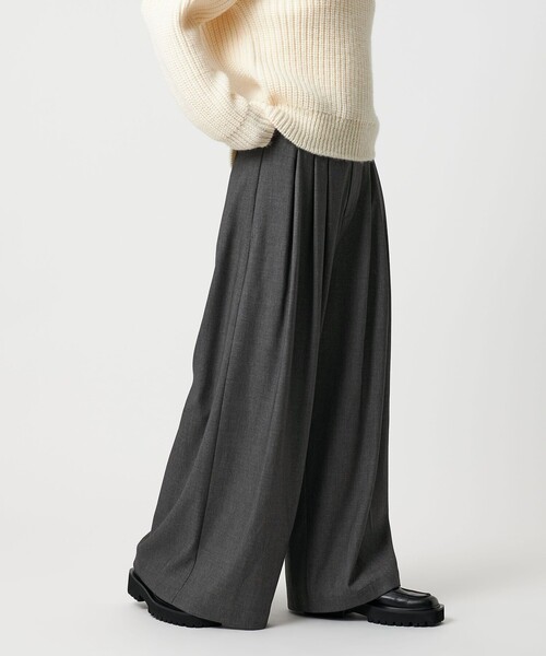 3本のタックが生む立体感で、動きのあるシルエットを生み出すワイドパンツ。
