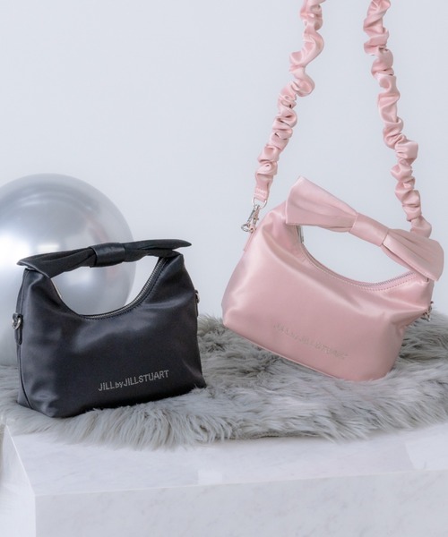艶やかなサテン素材を使ったシンプルで洗練されたデザインは、リボンハンドルで甘さをプラス。
