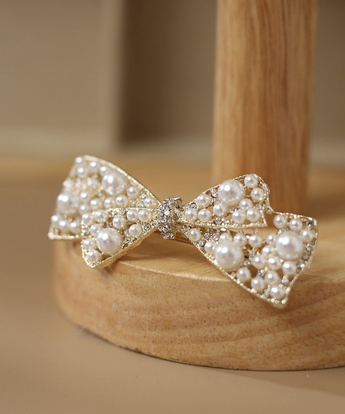 甘さと煌めきをひとつに、パール×ビジューリボンバレッタ。