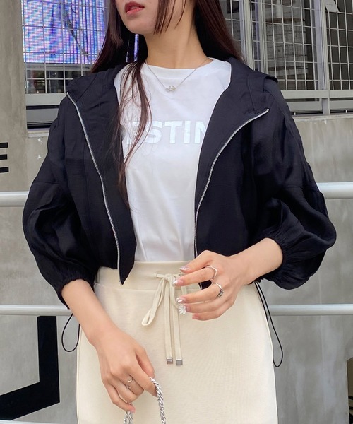 参考商品名:7分袖クロップドシアーマウンテンパーカー