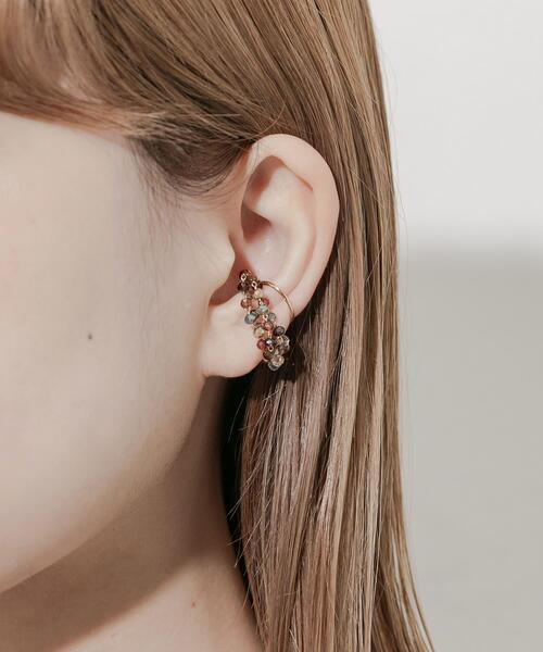 【木の実のように艶めくビーズイヤーカフ】●こっくりとした、秋色のマルチカラービーズ