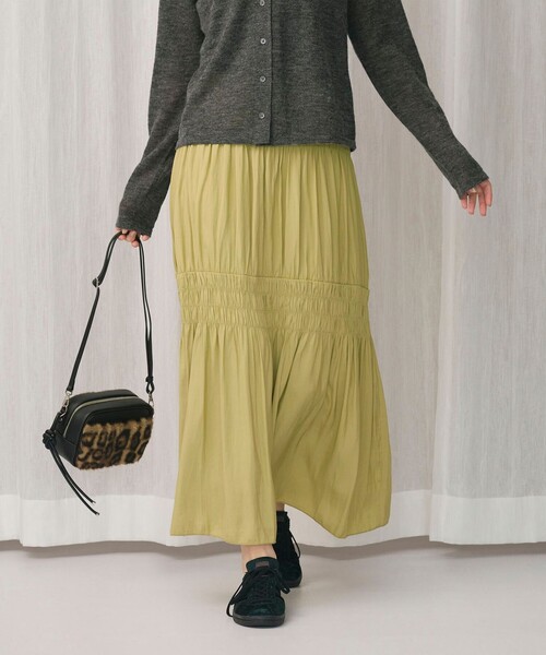 ■WEB限定商品■幅広のシャーリングが華やかなアクセントを添えるフレアスカート■デザイン