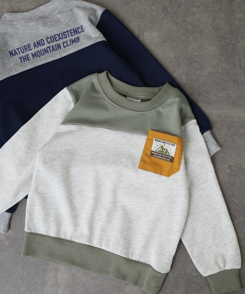 胸元のポケットとアウトドア風ネームタグがアクセントになり、背中の英字ロゴで後ろ姿もかっこよく決まる1枚。