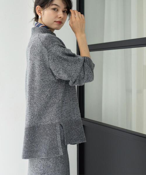 ・MIXヤーンにラメと小さめのスパンコールを引き揃えたニットが華やかな、ミドルゲージのハイネックニット。