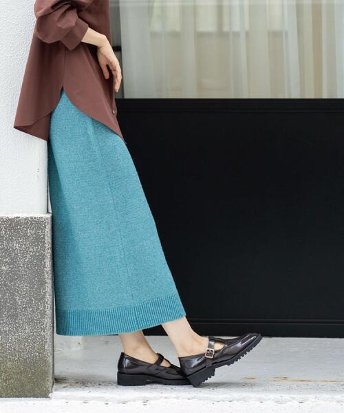 ・MIXヤーンにラメと小さめのスパンコールを引き揃えたニットが華やかなミドルゲージのナロースカート。
