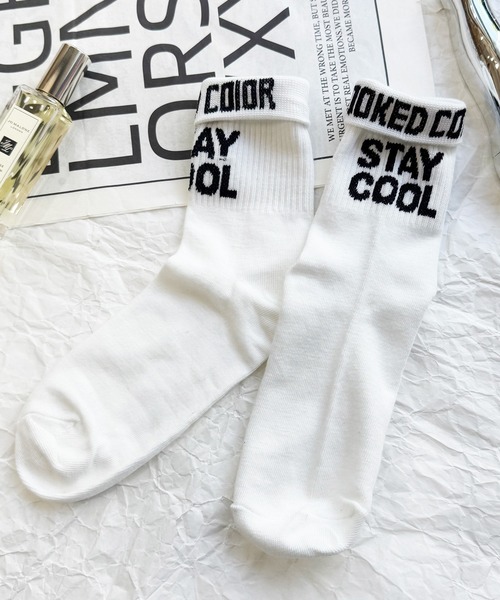 シンプルながら存在感のある ロゴ入り折り返しデザインソックス。