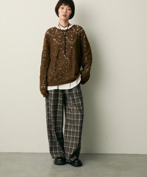 秋冬ムードを高めるチェック柄がポイントのイージーパンツ