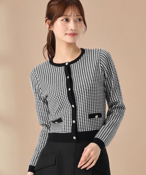 キーワード:カーディガン レディース ショート丈 チェック 長袖 オフィスカジュアル キレイめ デート ビジネス フェミニン 旅行